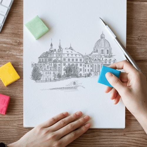 Vinyl erasers, block erasers, kneadable erasers, and pencil erasers are all the best erasers for charcoal drawing.