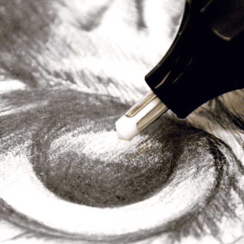 - Electric erasers are brilliant for detailed work and creating small highlights.