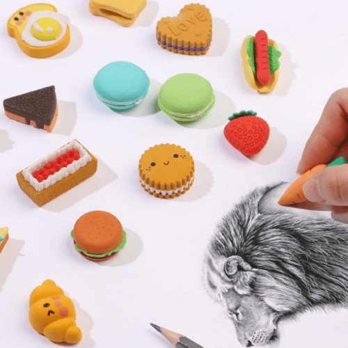 Shaped erasers come in various shapes. They are designed to resemble objects, characters, or symbols, adding a touch of fun and creativity to the erasing experience. Shaped erasers are fun types of erasers. Shaped erasers are popular among students, children, collectors, and anyone who wants to add a touch of personality and whimsy to their stationery collection. They can be used for erasing mistakes, decorating notebooks, or simply as fun collectibles.